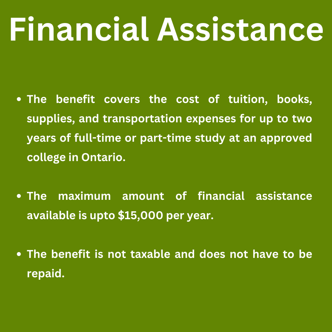 The benefit covers the cost of tuition, books, supplies, and transportation expenses for up to two years of full-time or part-time study at an approved college in Ontario. The program is designed to help injured workers develop new skills that will allow them to return to the workforce and support themselves and their families.