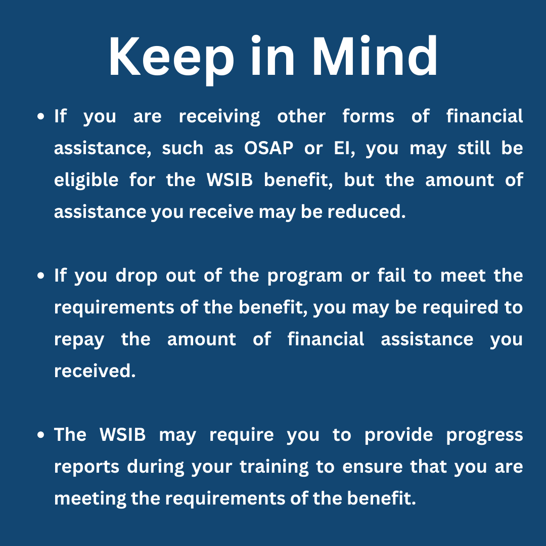To be eligible for the WSIB benefit to access study at colleges in Ontario, an individual must have a WSIB claim and have received or be entitled to receive a non-economic loss award. They must also have a plan for how the training will help them return to work.
